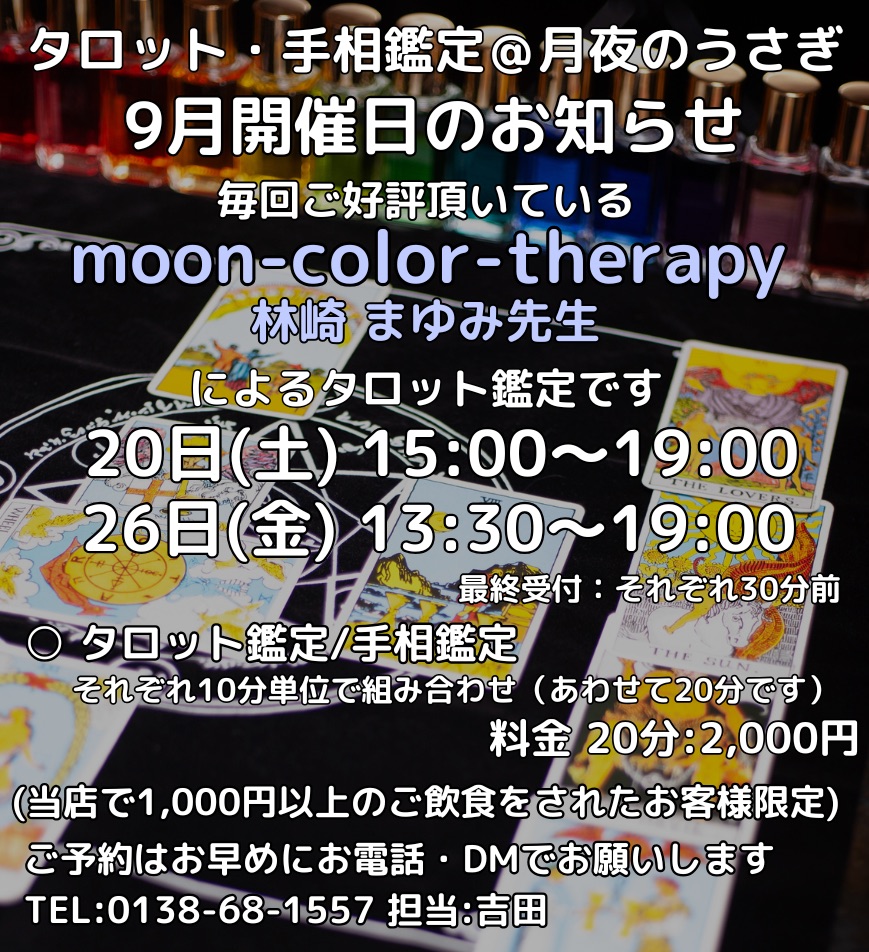 2025年9月タロット・手相鑑定スケジュールのお知らせです♪