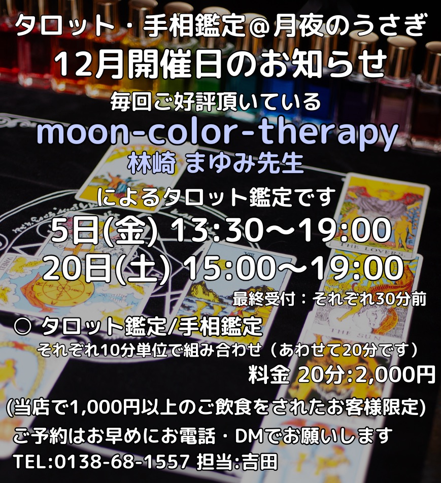 2025年12月タロット・手相鑑定スケジュールのお知らせです♪